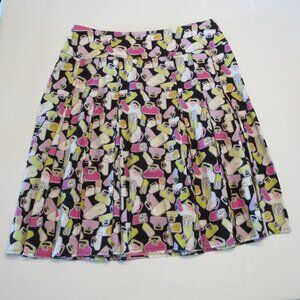 Liz Claiborne Pleated Skirt with Purses/Handbag Design Size 14 Black/Pink/Green