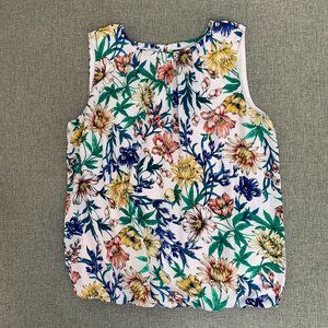 Liz Claiborne Pleated Sleeveless Top Small Floral Lined Polyester Round Neck