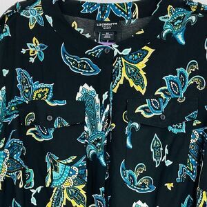 Liz Claiborne Women’s Plus Size Paisley Button Down Drawstring Waist Shirt:Dress with Two Chest Pockets Size 2X Approximately Measurement: Shoulder 18,5”/Pit 29”/Sleeve 26,5”/Length 43” Pre-owned Excellent y