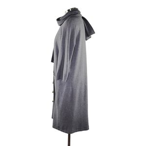 Liz Claiborne Ponte Knit Cropped Sleeve Button-Up Long Jacket Womens Size L Gray