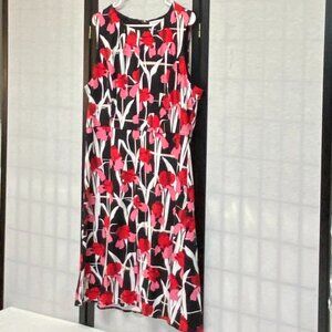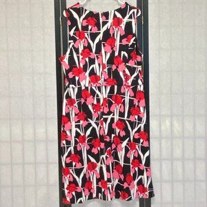 Liz Claiborne Princess Seam Pleat Neck A Line Floral Midi Dress XL Sleeveless
