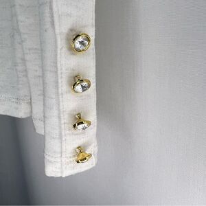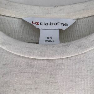 NEW with tag Liz Claiborne pullover sweatshirt with metallic flecks and rhinestone button details at the sleeve cuffs. Round neck. Lightweight. Size XS.