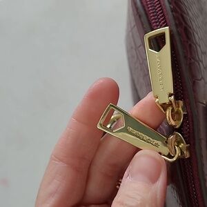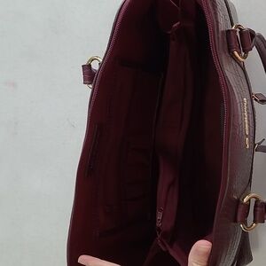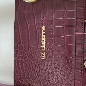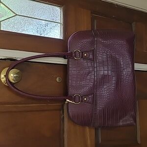 Liz Claiborne Purple croc embossed Satchel. Elevate your style with this elegant bag. Crafted in a rich purple hue, it's perfect for any occasion. The sleek design and quality materials make it a must-have accessory. Lots of pockets & very clean. It has a large padded pocket on the side for a tablet.