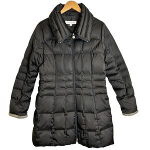 Liz Claiborne Quilted Down Filled Puffer Coat Size Large Women's Black Mid Length