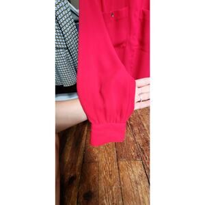 Liz Claiborne RED Blouse Womens Sz 8 Button Up Mandarin collar Business Casual