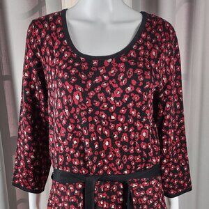 Liz Claiborne Red Black Print Fit Flare Knit Midi Dress Scoop Neck Size XL (NWT)