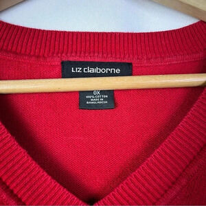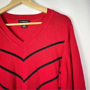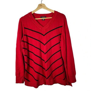 Liz Claiborne Red Black Stripe V-Neck Pullover Sweater 0X