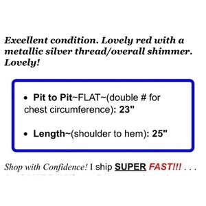 Excellent condition. Lovely red with a metallic silver thread/overall shimmer. Lovely!
