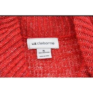 Liz Claiborne Red Cable Knit Cowl Neck Sweater Metallic Christmas Womens Sz XL