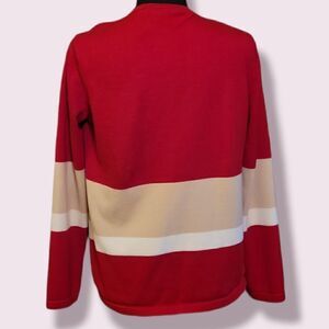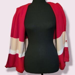 Liz Claiborne Red & Tan Button Up Cotton Cardigan | Size Small
