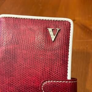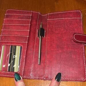 Liz Claiborne Red Textured Wallet with Snap Closure Initial V