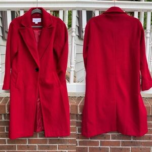 Liz Claiborne Red Trench Pea Coat Jacket Size Small Notch Collar Longline