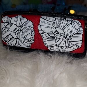 This shoulder bag is very striking! Gorgeous white bows on a red background.
