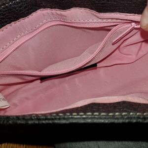 Black polyvinyl makes the bag and strap sturdy and clean.