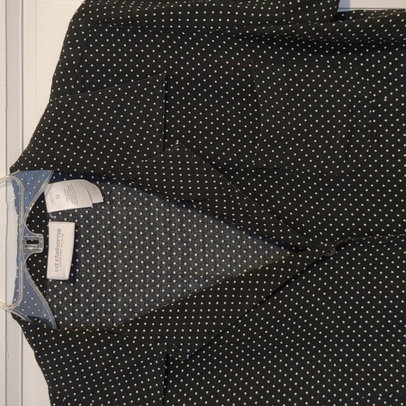 Liz Claiborne Retro Black White Polka Dot Blouse Short Sleeve Camp Button Down