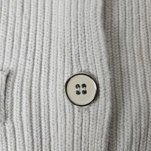 Embrace timeless style with this classic Liz Claiborne ribbed knit cardigan in a versatile white. Made from a soft and comfortable cotton blend, this sweater features a full button-front closure with silver-rimmed buttons, a chic mock neck, and two front patch pockets. Perfect for layering, this piece offers a clean, minimalist, and preppy aesthetic for any season.