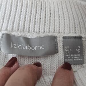Liz Claiborne Ribbed Cardigan Womens Small White Button Up Preppy Classic Y2K