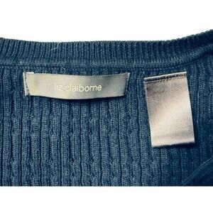 Liz Claiborne Ribbed V-Neck Sweater Navy Blue Cotton Blend Size 1X Plus