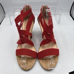 Liz Claiborne Rockelle Red Stretch Wedge Sandals 9M Comfy Chic Back Zip
