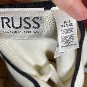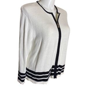 Liz Claiborne Russ White Zippered Cardigan with White Stripes Size XL 16/18