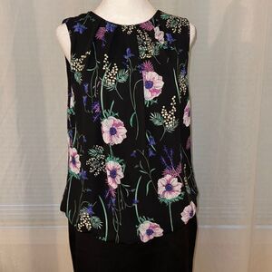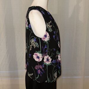 Liz Claiborne S Career Black Multicolored Floral Sleeveless Bubble Waist Top