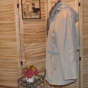 Liz Claiborne SP Tan Hooded Utility Jacket Anorak Zip Out Lining