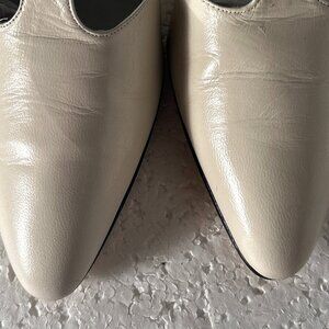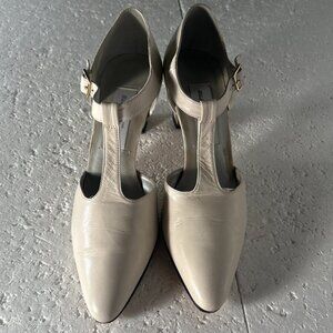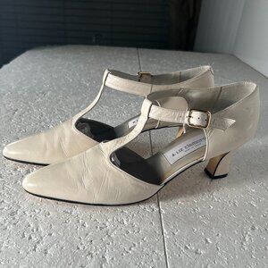 Liz Claiborne SZ 7.5N Ivory Leather T-Strap Pointed Toe Heels Formal Career Party Chic