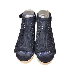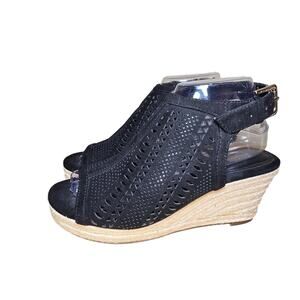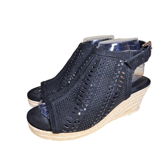 Liz Claiborne Sandals Womens 8 M Hardie Wedge Heels Espadrille Black Cut Out