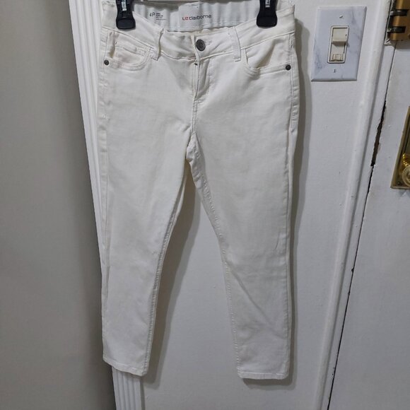 Liz Claiborne Sara Slim Leg Mid Rise Stretch Jean White 4P