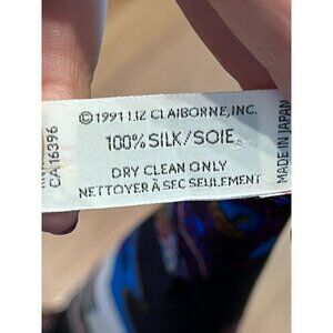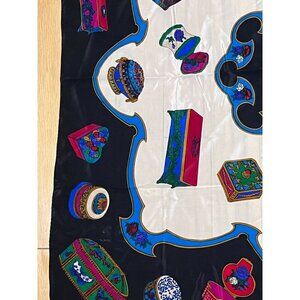 Liz Claiborne Scarf Women 31" Black Silk Square Cinderella Trinket Box Artsy 80s