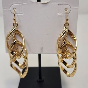Liz Claiborne Shiny Gold Tone Dangle Drop Hook Earrings Pierced Statement New