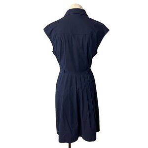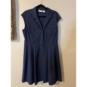 Liz Claiborne Shirt Dress 12 Navy Blue A Line Stretch Cotton Short Slv Washable