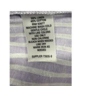 Elevate your wardrobe with this Liz Claiborne lilac and white striped linen-blend shirt. Perfect for casual outings or workwear, this versatile top combines style and comfort. Crafted with lightweight fabric and a flattering fit, it's a must-have for any season.
