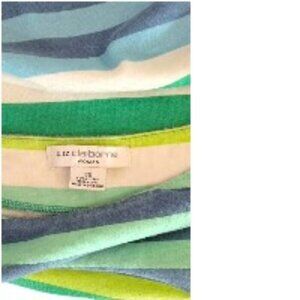 Liz Claiborne Short Sleeve Blue, Turquoise, Yellow, White Striped Top in 3X