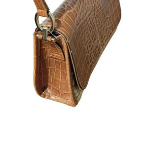Liz Claiborne Shoulder Bag Purse Faux Crocodile with Multi-Color Jute