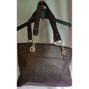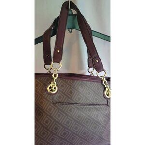 Liz Claiborne Signature Logo Handbag & Wallet Large Burgundy & Brown Purse Tote