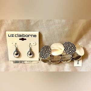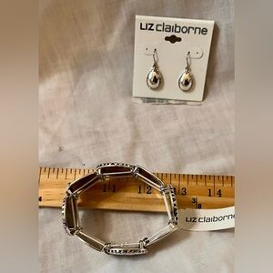 Liz Claiborne Silver Drop Earrings and Stretch Bracelet Bold Metal NWT Boho Chic