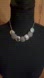 This stunning Liz Claiborne necklace features a series of silver-toned discs with a unique hammered texture, creating a captivating visual appeal. The elegant design is completed with a silver chain, making it a versatile accessory for any occasion.