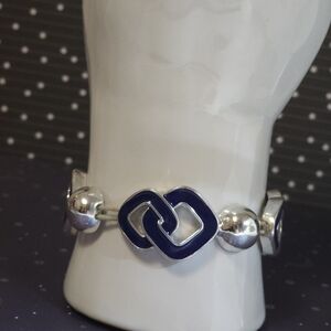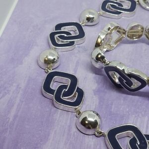 Liz Claiborne Silver Tone Blue Enamel Necklace & Bracelet Set