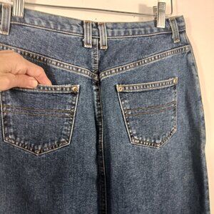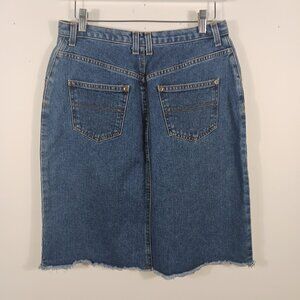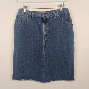Liz Claiborne Size 10 Denim Skirt, Fray Hem, Zip Fly, Western, Casual, Classic