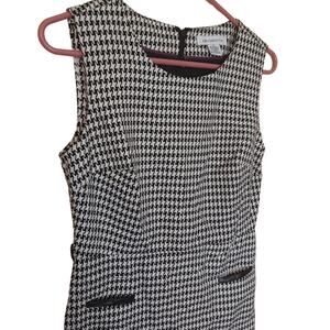 Liz Claiborne Size 4 Houndstooth Black White Dress Sleeveless Pockets Profession