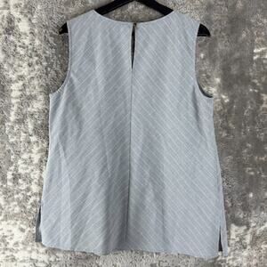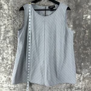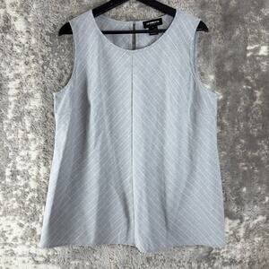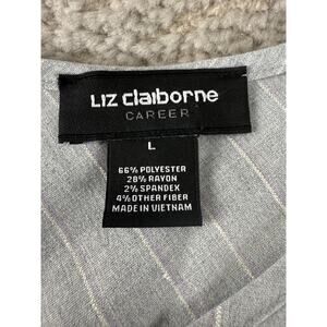 Liz Claiborne Size L Career Striped Casual Top Gray Sleeveless Round Neck Button