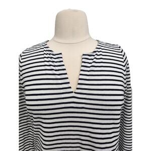 Liz Claiborne Size XL Black & White Stripes Front Pocket Knit Pullover Top #flaw