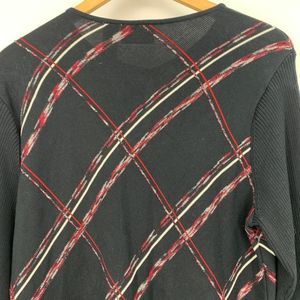 Liz Claiborne Size XL Black cardigan Sweater Button Up Cotton Blend 1943 Argyle