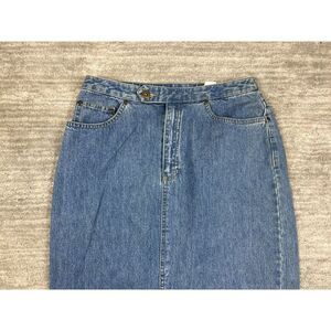 Liz Claiborne Skirt Womens 8 Blue Denim Pencil Front Slit 100% Cotton Modest