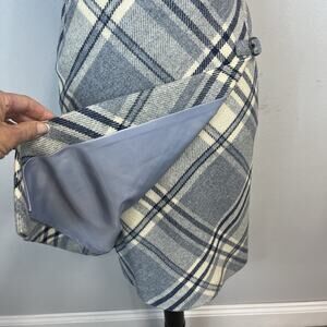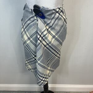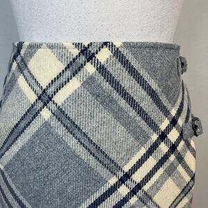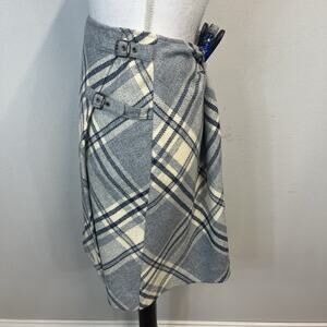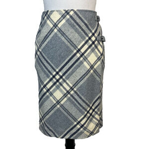 Liz Claiborne Skirt sz 10 Blue Gray Wool Plaid Wrap Knee Preppy Equestrian Polo