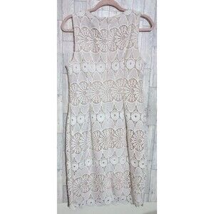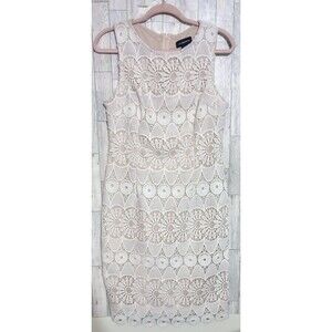 Liz Claiborne Sleeveless Floral Lace Sheath Shift Dress Lined Cream/Tan Size 6