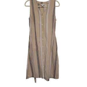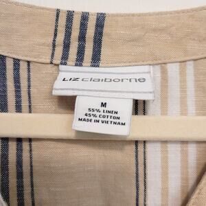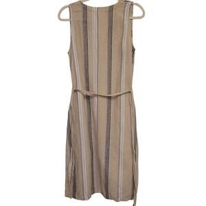 Liz Claiborne Sleeveless Striped Midi Dress Belted Size M Linen Blend Classic