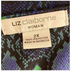 Liz Claiborne Snakeskin Print Lightweight Blue Green Blouse Womens PLUS Size 2X