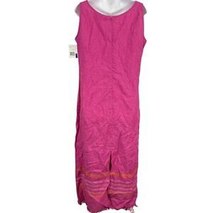 Liz Claiborne Sport 100% Linen Pink Sleeveless Maxi Dress Fringe Trim NWT sz 8